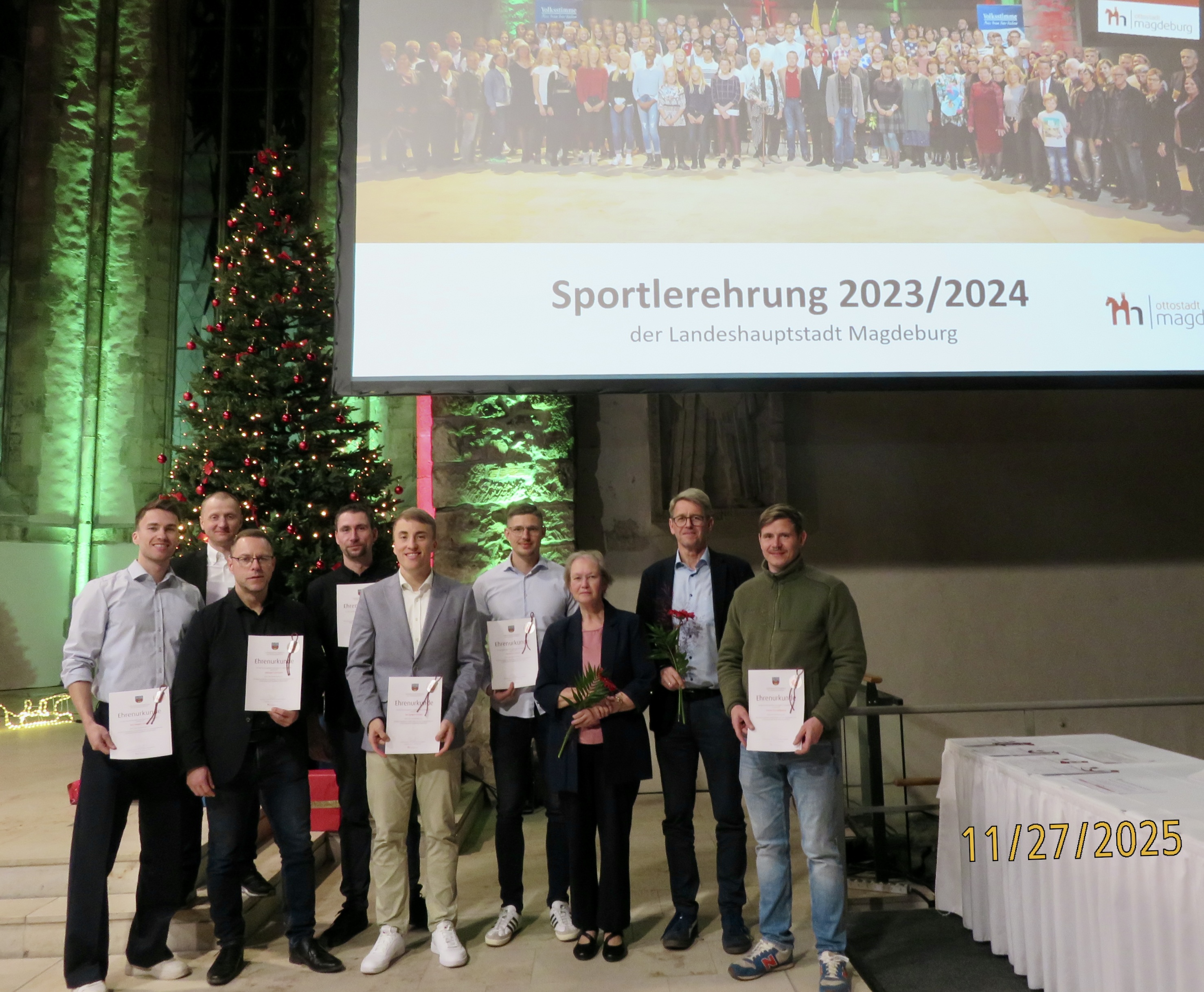 Unser Drachenbootteam wurde für die sportlichen Erfolge 2023/2024 bei Welt- und Europameisterschaften im Rahmen der Sportlerehrung der Stadt Magdeburg ausgezeichnet. Weiterhin wurden Heike Riedl für ihre Jugendarbeit und Jörg Hendschke für sein Engagement um das Regattawesen geehrt. Wir gratulieren